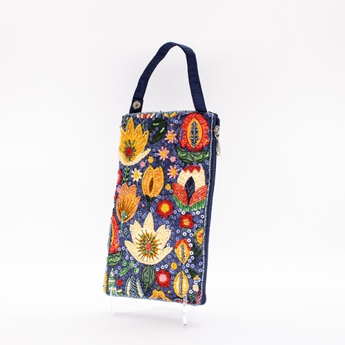 Exquisite beaded designs are featured on these trendy 9″ x 6″ club bags. Each comes with a short handle and a 30″ shoulder strap. Zipper closure. Lined.