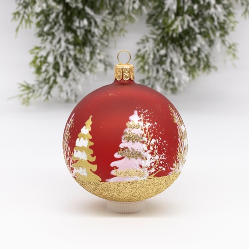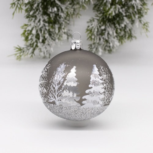 Our glass ornaments have been hand-made and imported from the Czech Republic. These stunning matte color ornaments feature silver/white and gold/pink/white winter evergreens.