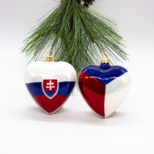 These exquisite glass heart ornaments featuring Czech or Slovak flags were hand-made, and hand-decorated by skilled artists in the Czech Republic. Approx. 3 in wide and long. What a beautiful way to express our love for either recent or ancestral homelands!