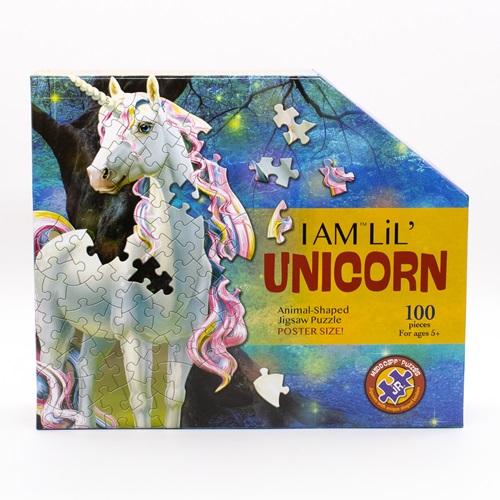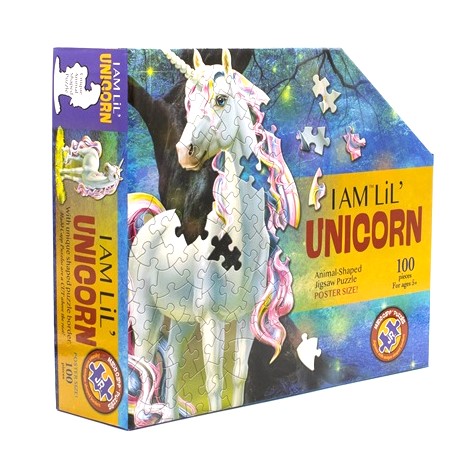 Dreamy unicorn comes alive when this 100-piece jigsaw puzzle is completed in a poster size. Suitable for children ages 5+.