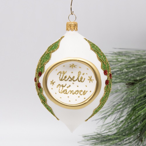 Our mouth-blown glass ornaments are decorated and painted by hand. Made in the Czech Republic. Veselé Vánoce means Merry Christmas in Czech.
